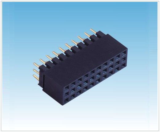 名称:2.54mm排母 双排 Y端夹板式(带防呆凸点) spec:2.54mm Female Header Dual Row Staddle With Polarization Bump Plastics |