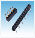 名称:2.54mm排母 单排 SMT正/反脚位 spec:2.54mm Female Header Single Row SMT Plastics |